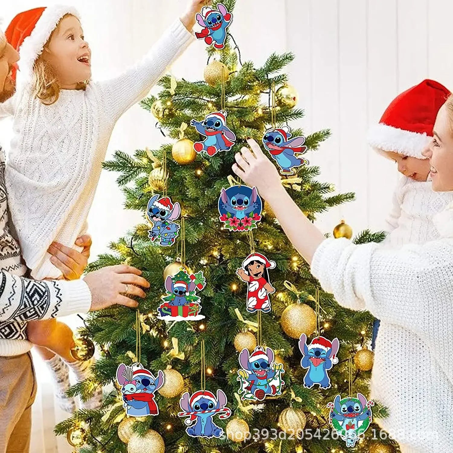 Bu 12 parçalık Stitch figür süs seti, çocuk odaları, Noel ağaçları veya hediye paketleri için mükemmel dekoratif detaylar sunar.